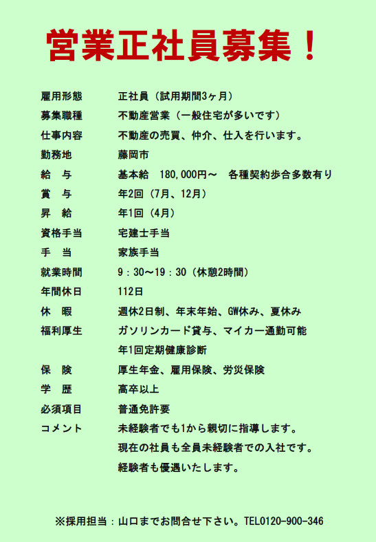 営業正社員募集中!ベストハウスは藤岡駅から徒歩3分の場所にある不動産及び建築会社です。藤岡市を中心に地域道着&地域発展の為に販売活動を行っている会社です。一緒に働ける仲間を募集中です。ご興味のある方はご連絡ください。